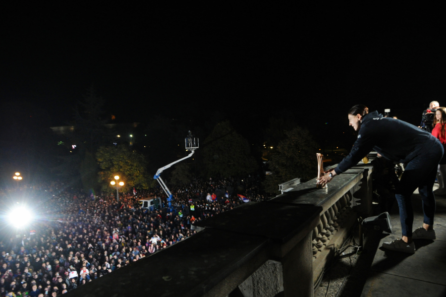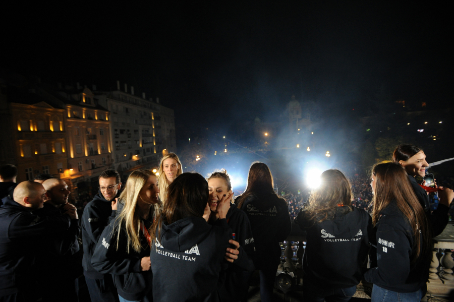 Sjajno! Srbija zna de ceni svoje šampione. Legendarni balkon i zlatne devojke, ponovo, i ovoga puta atmosfera je bila sjajna.