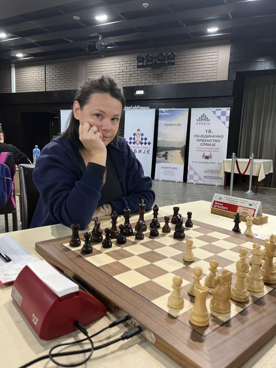 Jovana Erić je vodeći crne figure uspela da nadigra predstavnicu Srbije na nedavno završenom omladinskom prvenstvu sveta, Anastasiu Grozdanović. Bela je neoprezno svojim kraljem “ušetala” u centar table, pod paljbom protivničke dame i topa. Materijalno slabija Grozdanovićka je obustavila dalji otpor.