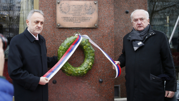 Predsednik OKS Božidar Maljković i ministar sporta Zoran Gajić postavili su venac na spomen ploču u znak sećanja na osnivače OKS, a u čast rođendana intonirana je i himna Srbije.
