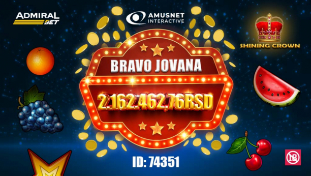 Jovana je svoju avanturu započela na sajtu AdmiralBet.rs, tako što je pomenutih 20 dinara uložila na spin u slot igri Shining Crown od Amusnet-a, koja joj je donela fatastični Amusnet Jackpot! Navedeni džekpot ju je učinio bogatijom za fenomenalnih 2.162.462,76 dinara, što znači da je ulog naše Jovane uvećan više od neverovatnih 100.000 puta, a to je bilo i više nego dovoljno da ona postane nova AdmiralBet milionerka.