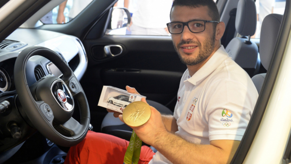 Direktorka FIAT-a za Srbiju Silvija Verneti uručila je ključeve rvaču Štefaneku i najmlađem članu "delfina" Nikoli Jakšiću.