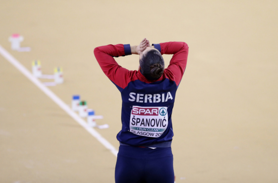 Na poslednjem treningu pred odlazak na EP u dvorani u Torunu, Španović se povredila zbog čega nije bila u prilici da juriša na četvrto uzastopno zlato.