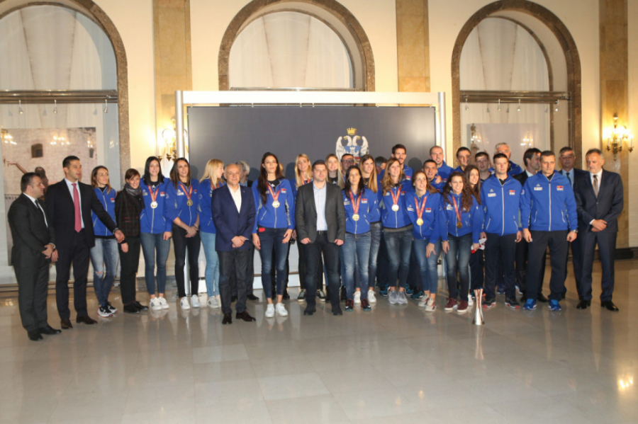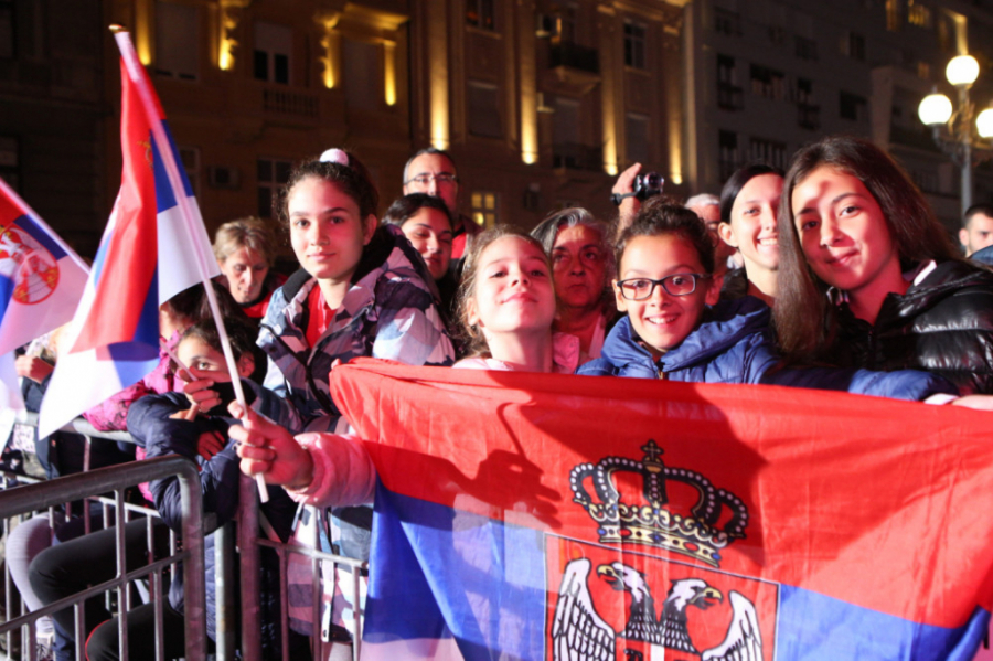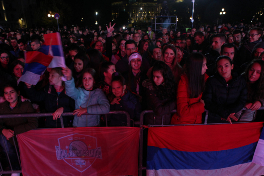 Ovacijama i skandiranjem pojedinačno su pozdravljene evropske i svetske šampionke na tradicionalnom mestu proslave uspeha srpskih sportista.