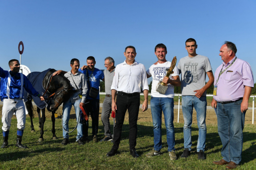 Ovogodišnji pobednik u trci „Srpska konjička divizija“ na 2.000 metara je jahač Kristijan Gnjezi i grlo „Krasiva“, a pehar mu je uručio Vulin.