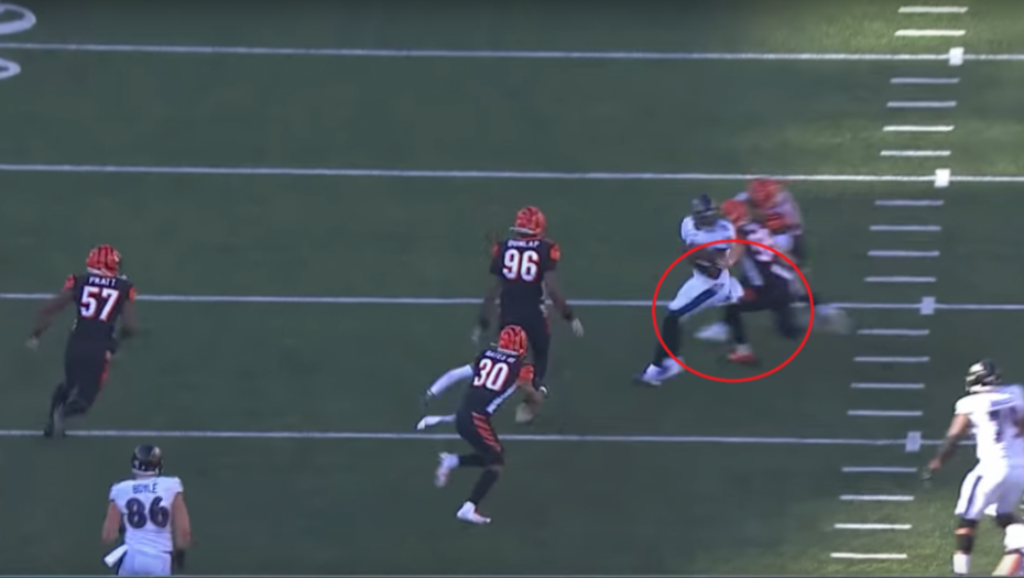 Na divizijskom duelu protiv Sinsinati Bengalsa je uspeo da se, atipično za njegovu poziciju, probije u srce obrane. Prvo je blagim zastajanjem ostavio jednog čuvara, a onda eksplozivnim okretom ostavio drugog na travi, a trećeg u čudu kako je nestao.
