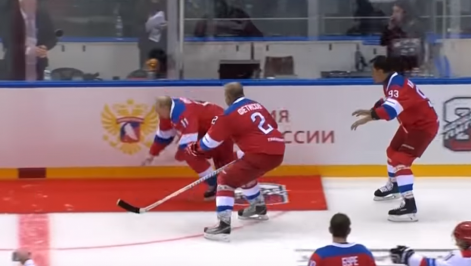 Putin izrešetao protivničke golove, pa završio na ledu prilikom proslave (VIDEO)