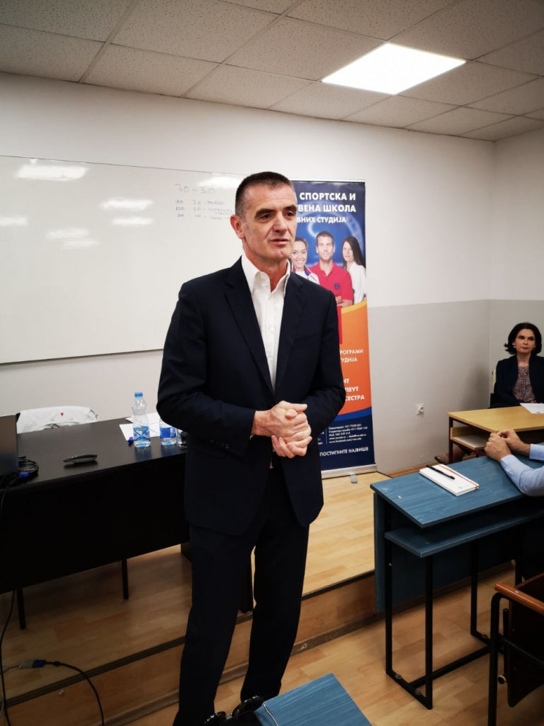 Prof.dr Jovan Šurbatović, obratio se rečima: „ Zadovoljstvo mi je da vas pozdravim i da formalno otvorim skup i tribinu koja ima za cilj da otvori diskusiju i raspravu o aktuelnom trenutku u kome se nalazi rukomet danas i kako će izgledati sutra. Koristim ovu priliku da napomenem da Visoka sportska i zdravstvena škola postoji dvadesetitreću godinu i da je kroz visoku školu danas i višu školu nekada prošlo dosta profesora, studenata i trenera iz oblasti rukometa, jedan od najvećih stručnjaka prof.dr Branislav Pokrajac je predavao na ovoj školi i 95 studenata rukometnih trenera je završilo svoje obrazovanje ovde. Studijski program sportski trener u rukometu i Visoka sportska i zdravstvena škola danas pružaju ruku, sportskim radnicima i rukometnim trenerima, da budemo akademski partner, da vam pružimo apsolutnu logistiku i da razgovaramo o tome kuda ide svetski rukomet, evropski rukomet i koje su to tendencije i koje su vaši zahtevi kao rukometne organizacije, u kom smeru idu, kako bi i mi mogli da modifikujemo nastavne planove i programe, kako bi u budućnosti napravili jednu „win-win“ situaciju da teorija podrži praksu i da se vratimo na staze velikih rezultata i uspeha koje je rukomet ostvario u prošlosti.“