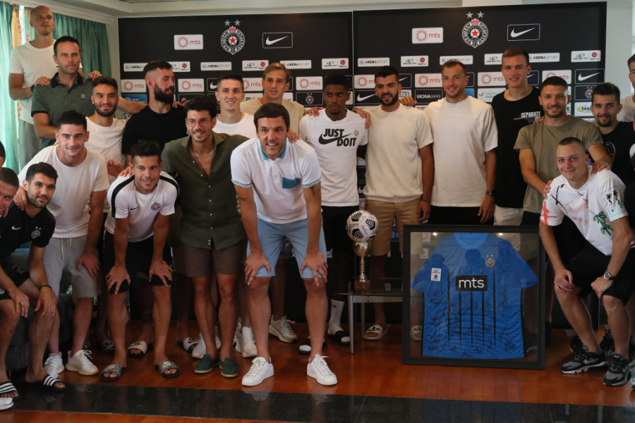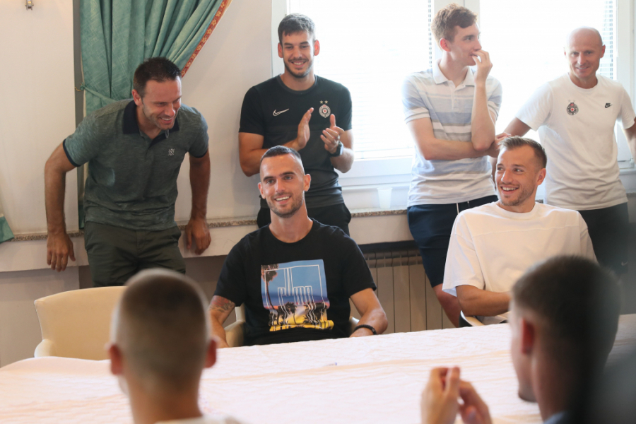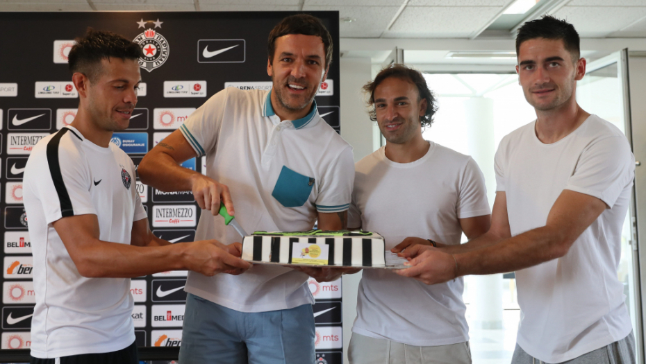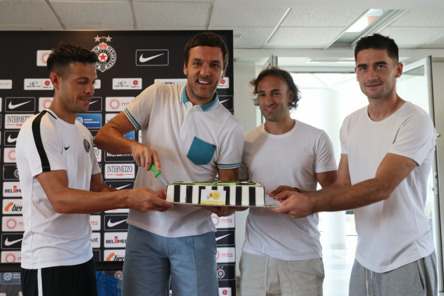Stojković je potom na poklon dobio dres i loptu sa potpisima svih igrača, a Lazar Marković, Milan Smiljanić i Saša Zdjelar predali su mu tortu.