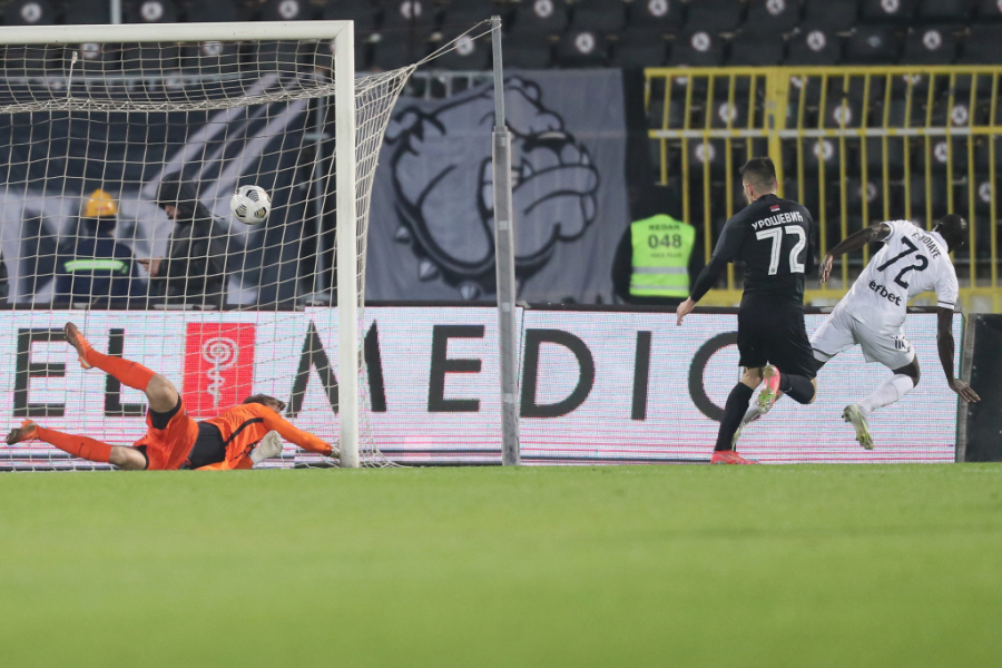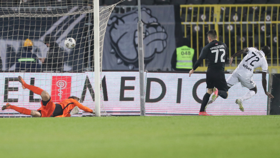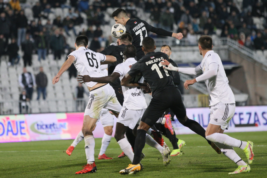 33. minut: Jojić je ubacio posle faula, Vujačić na osam metara najviši u skoku, gađao je glavom, golman Petrović je dodirnuo i gurnuo loptu ka stativi, očešala je, ali i završila u mreži, Partizan - Čukarički 1:0.