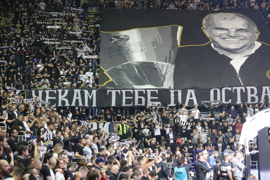 Razvili su veliki transparent sa likom trenera Željka Obradovića, a onda se zaorilo "uzmi Željko evrotitulu"...