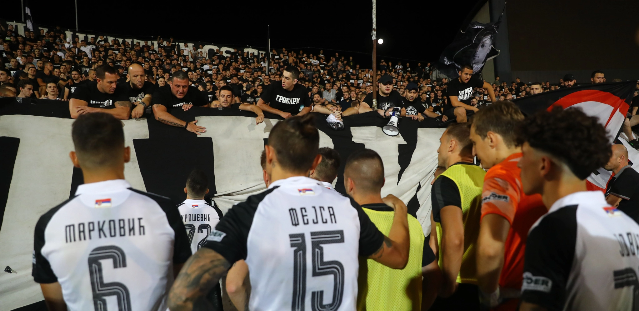 Igrači Partizana su posle remija sa kiparskim timom mirno stajali ispod južne tribine dok su "grobari" izražavali nezadovoljstvo.
