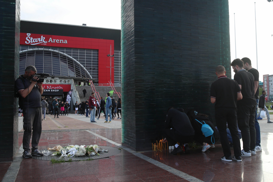 19.54 - Navijači pristižu u velikom broju, pale sveće i polažu cveće ispred Arene.