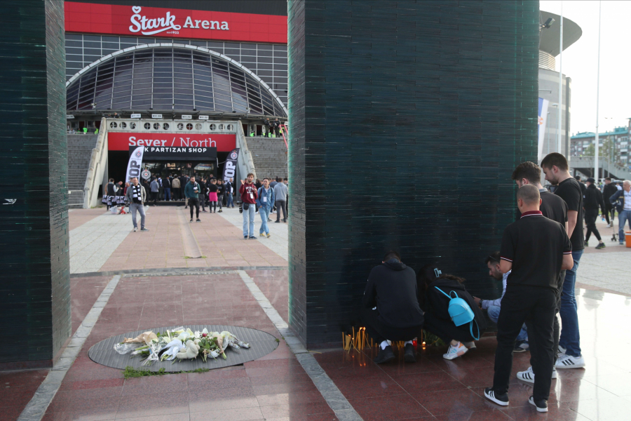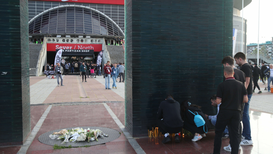 19.00 - Dirljive scene ispred Arene. Navijači Partizana odali počast nastradalim mališanima.