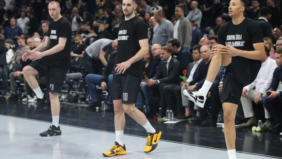Košarkaši Partizana igraju četvrtu utakmicu protiv Real Madrida u plej-ofu Evrolige u kompletno crnim dresovima, na kojima stoji ime OŠ "Vladislav Ribnikar" u kojoj je juče ujutru devet osoba ubijeno.
