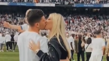 SCENA O KOJOJ BRUJI ŠPANIJA Jović slavio sa igračima Reala, a onda je došla Sofija - poljubio je pred punim tribinama (VIDEO)