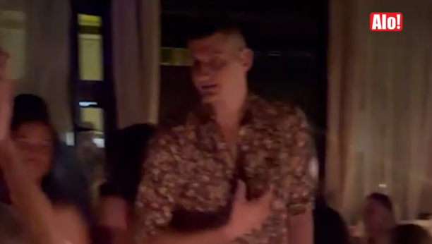 Čini se da ga pesme pogađaju pravo u srce... Jokić je bio atrakcija, a gotovo ceo lokal gledao je u njega.