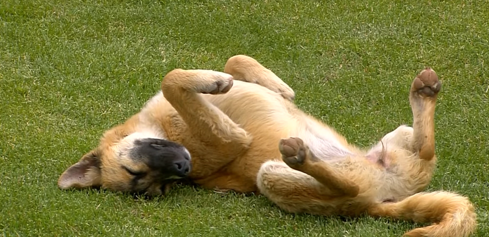 U pitanju je pas koji je snimljen kako spava kraj aut linije i to onako baš sa uživanjem. Sve četiri u vis i dremkica posle kišovitog dana, zar postoji nešto bolje...
