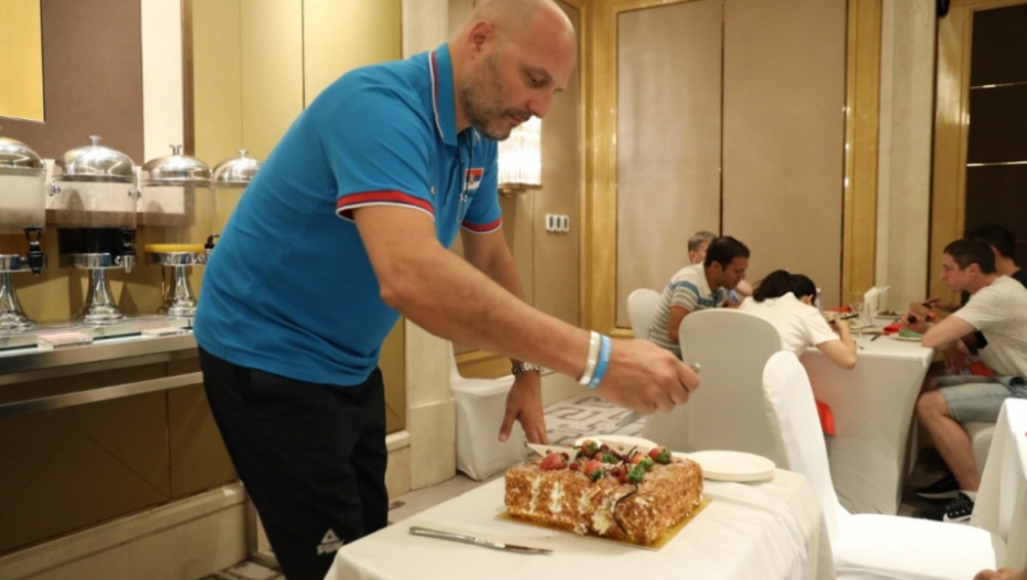 Nisu to zaboravili reprezentativci i članovi stručnog štaba našeg nacionalnog tima, pa je Đorđević posle ručka u hotelu „Vanda vista“ dobio tortu, a svi zajedno su mu otpevali rođendansku pesmicu.