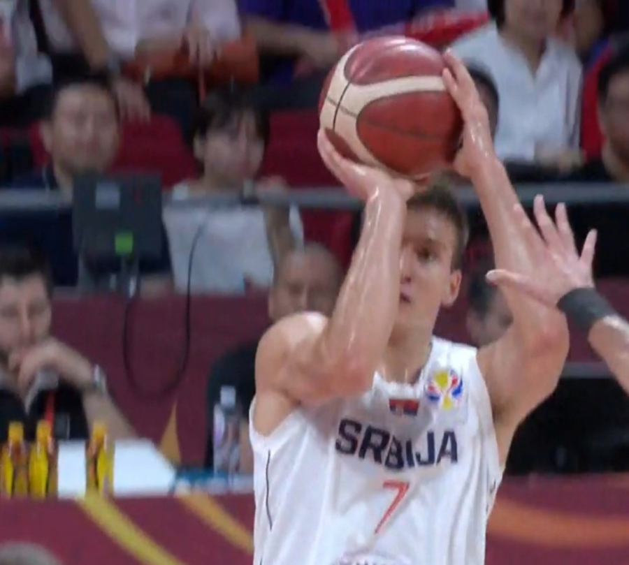 1' Prvi napad i prva trojka za Bogdanovića! Dva slobodna bacanja za beka Srbije, propustio je šansu da upiše 2+1! Pogodio je oba. 5:0