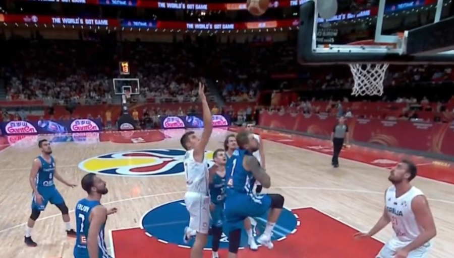 10' Kompenzacija za lošu odluku, napad za Srbiju! Konačno faul za Bobana Marjanovića! Bobi je pogodio jedno bacanje, a na isteku poluvremena loptu polaže Satoranski, 41:50.