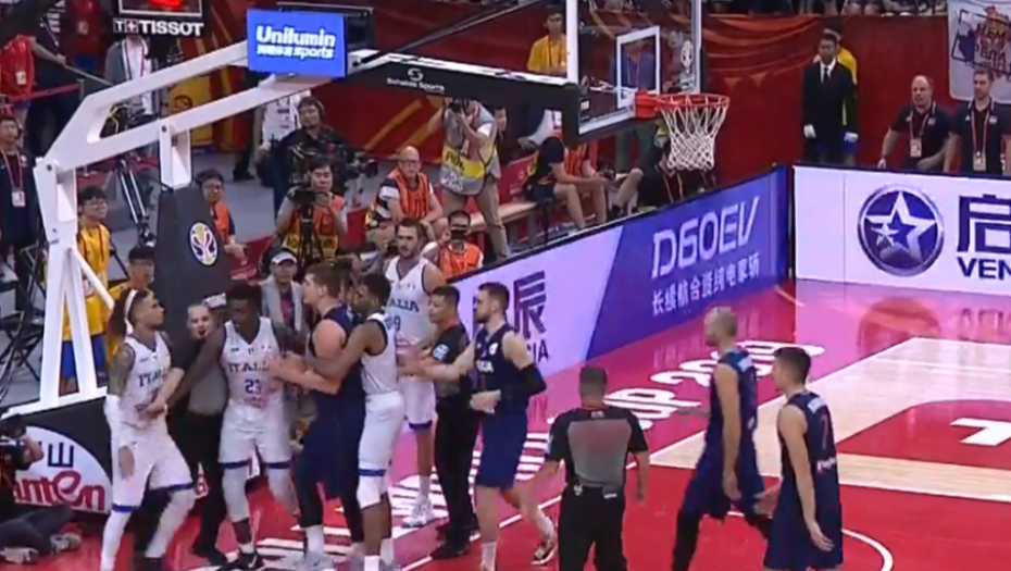 On je naime, odgurnuo Italijana koji je pao na pod. Nastala je opšta pometnja i igrači obe ekipe su se umešali.
