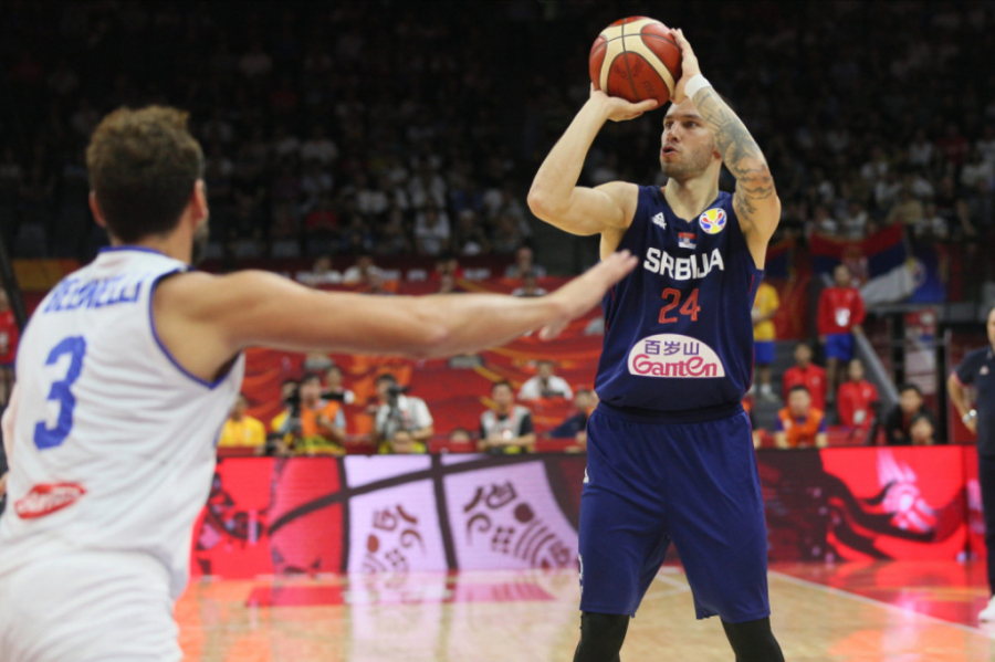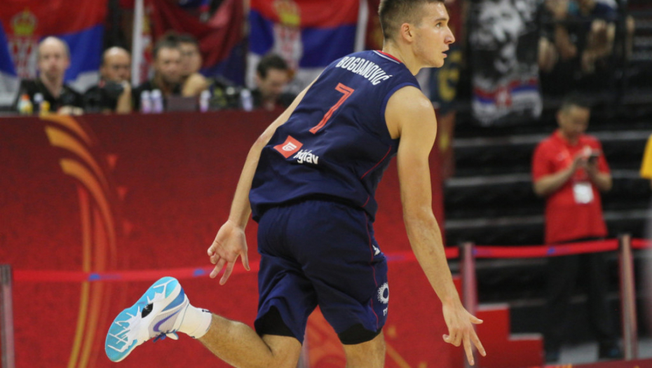 2' Belineli srećom promašuje ulaz, naši hvataju loptu. Bogdan je promašio za tri, ali nastavljen je napad Srbije. Sad pogađa! Bogdan - trojka! 24 poena ima Bogdan Bogdanović. 73:62.
