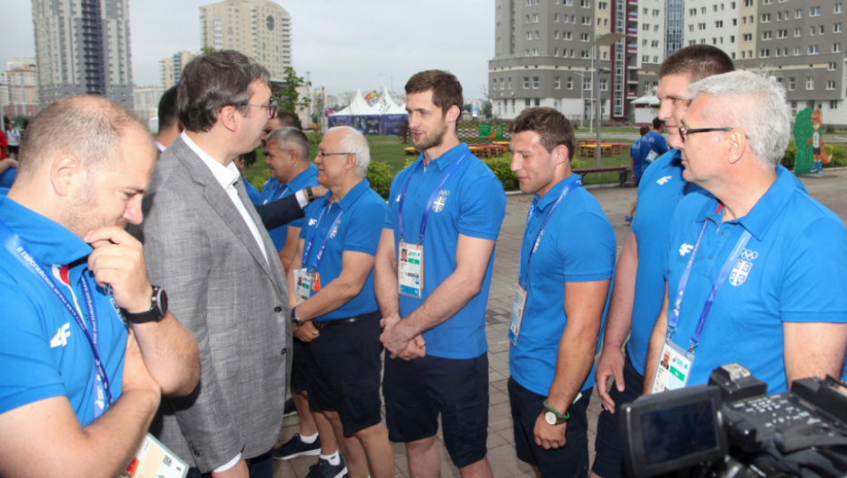 “Obišao sam naše sportiste, ja ne prisustvujem sportskim događajima, ali navijam svim srcem i trudimo se da uradimo sve za naše sportiste”, rekao je Vučić.