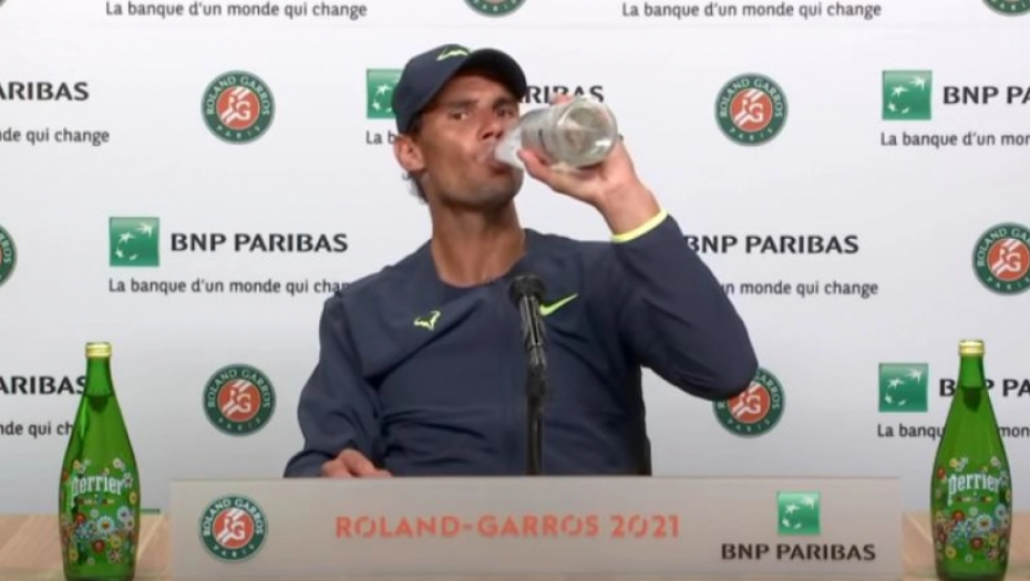 Iako Nadal važi za jednog od fizički najspremnijih tenisera na svetu, on je na pres konfernciji pre pitanja novinara uzeo flašu vode i iz cuga je popio pola.