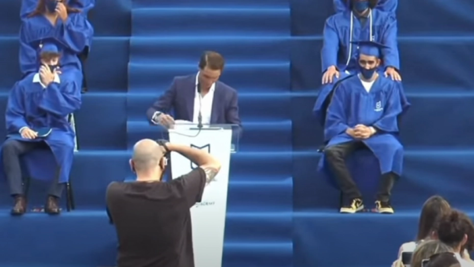 On je držao pozdravni govor studentima svoje Rafa Nadal Akademije koji su upravo završili školovanje, a govor je počeo podsećanjem na poraz od Novaka.