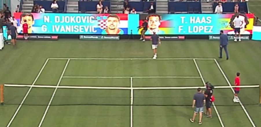 Nole i njegov sadašnji trener Goran Ivanišević našli su se na megdanu Tomiju Hasu i Felisijanu Lopezu.
