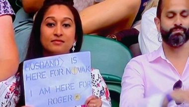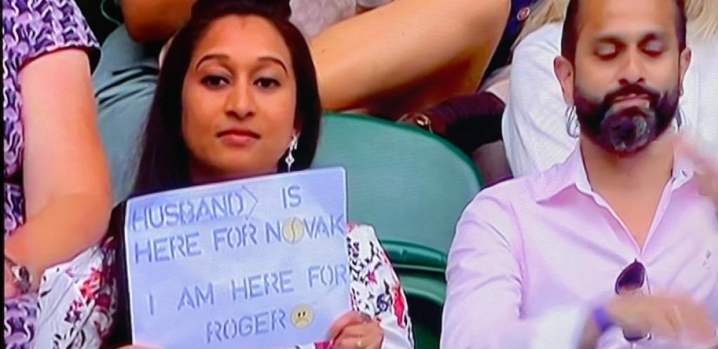 Usledila je iznenađujuća scena, žena je izvukla papir sa natpisom "muž je ovde zbog Novaka, a ja sam zbog Rodžera".