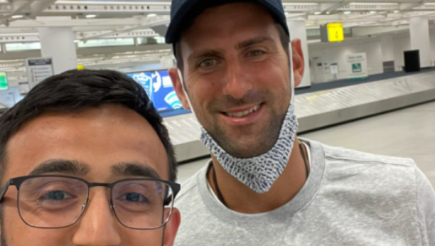 Nakon što je izašao iz aviona navijači srpskog asa odmah su krenuli da ga saleću na aerodromu u Njujorku za fotografiju, a onda je procurela i jedna na kojoj je Novaku jedno oko poluzatvoreno.