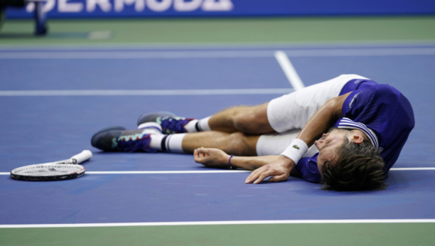 Posle osvojenog poslednjeg poena Medvedev nije mogao da veruje šta je učinio i umoran se srušio na centralnom terenu teniskog kompleksa u Njujorku.