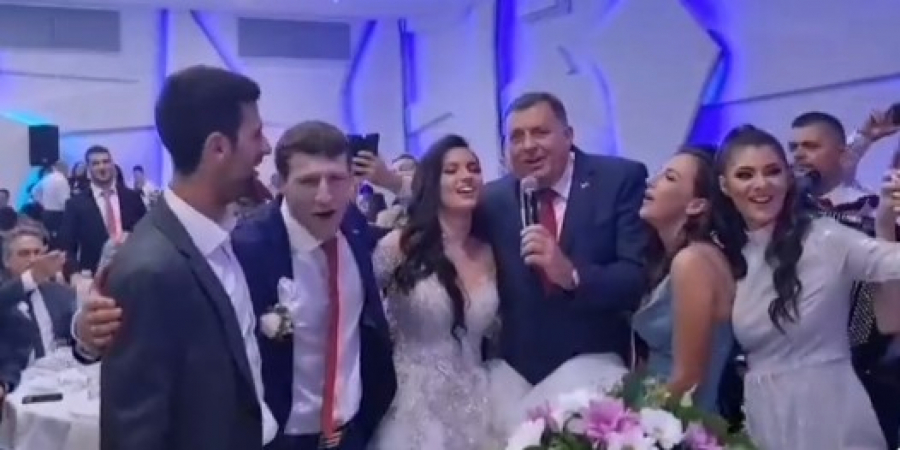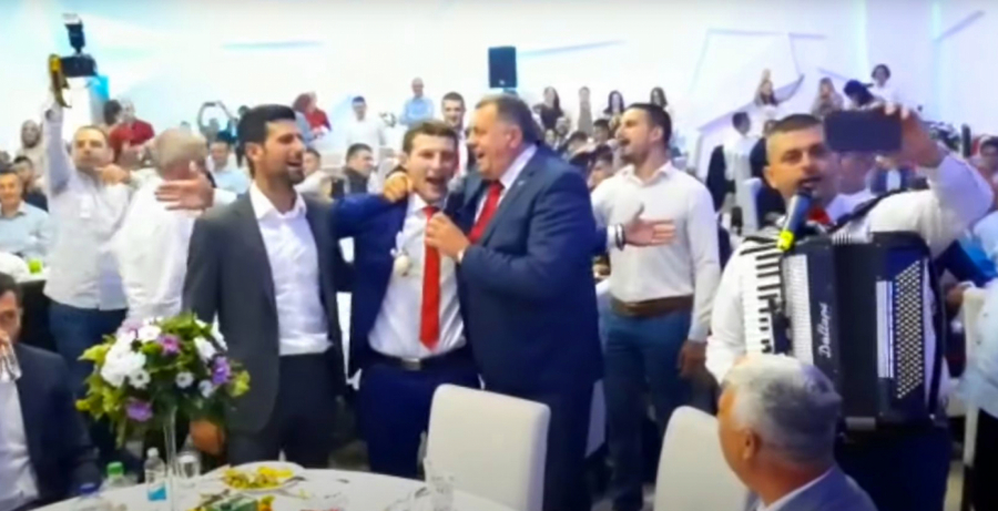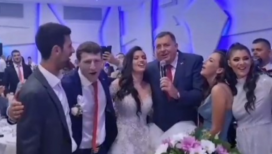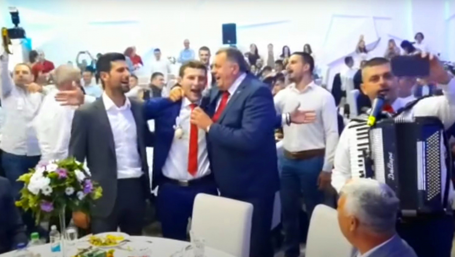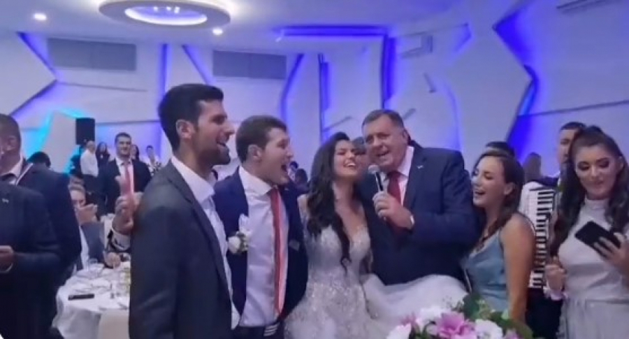 Đoković je sa članom predsedništva BIH Miloradom Dodikom zapevao hit "Romanija" od Halida Bešlića, a zatim su Novak i Dodik sa mladencima otpevali pesmu "Pukni zoro" iz popularnog filma "Montevideo bog te video".