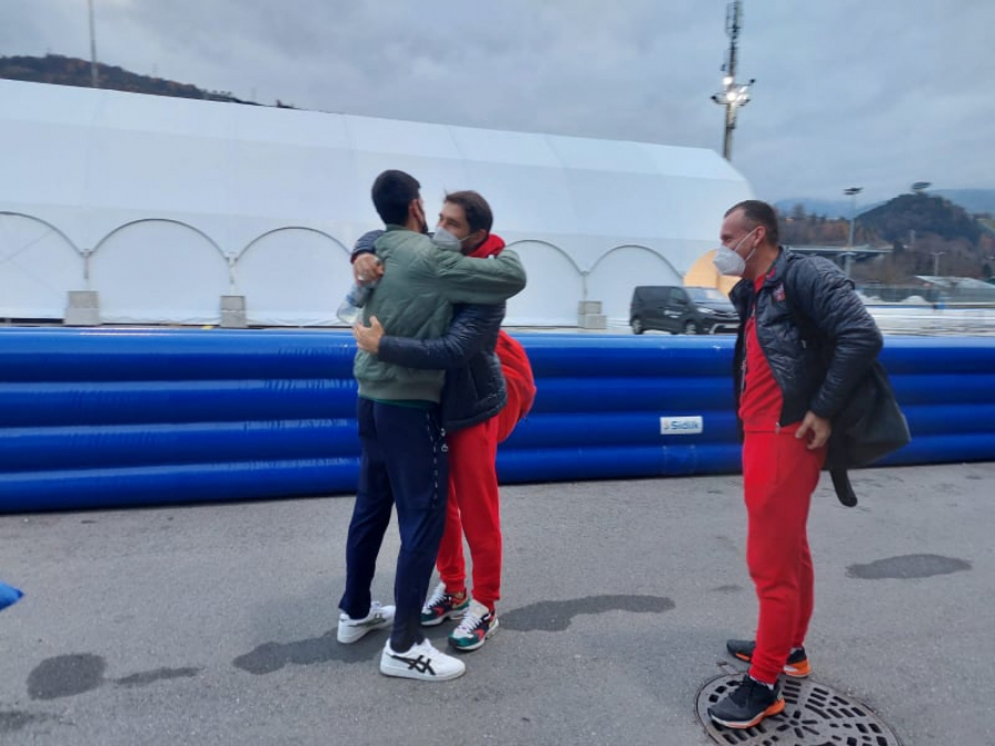 Odmah po sletanju Insbruk, Novak Đoković se uputio u halu gde su ga sa velikom radošću i nestrpljenjem čekali drugovi iz reprezentacije i svi članovi našeg tima.