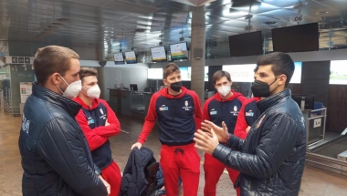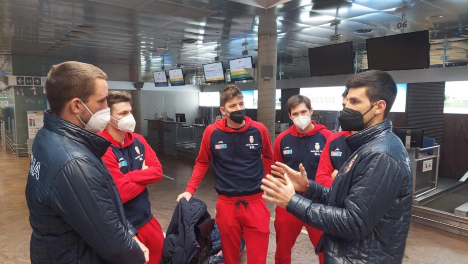 Dok je naša selekcija čekala let za Madrid, Nole je davao savete. Đoković je okupio kolege iz reprezentacije i delio im savete.