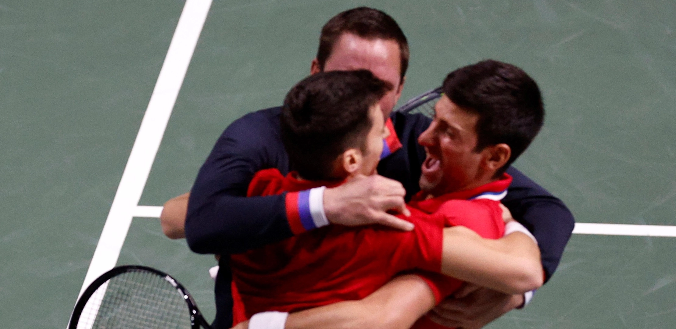 Novak Đoković i Nikola Ćaćić su u odlučujućem meču pobedili Andreja Golubjeva i Aleksandra Nedovjseva sa 6:2, 2:6, 6:3 i tako odveli Srbiju u polufinale gde ih čeka Hrvatska koja je eliminisala Italiju.