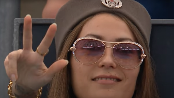 Kamera je više puta zumirala, na šta je ona uzvratila pozdravom s tri prsta.