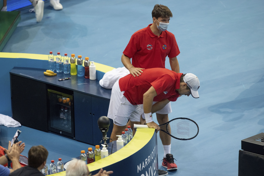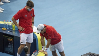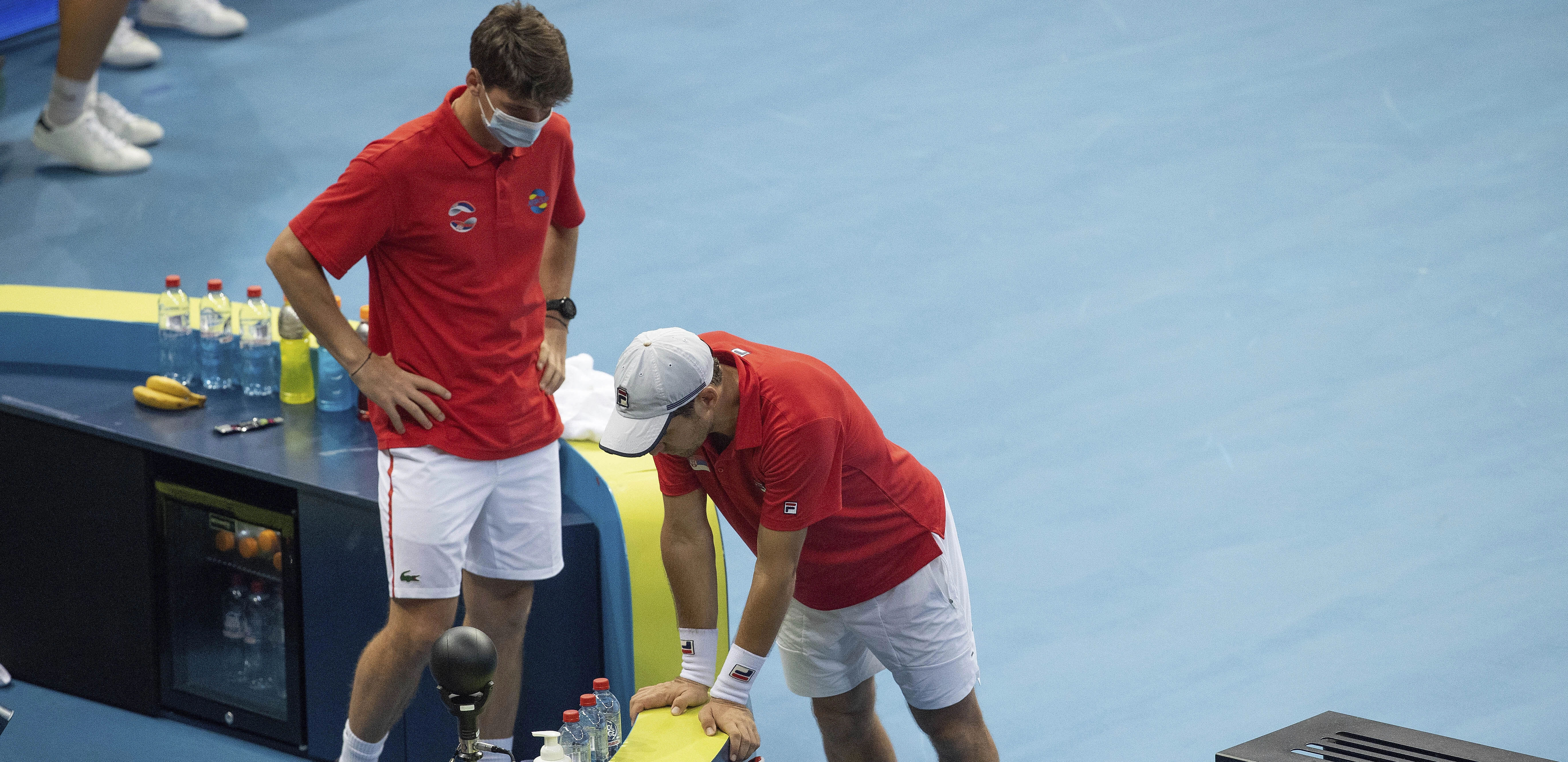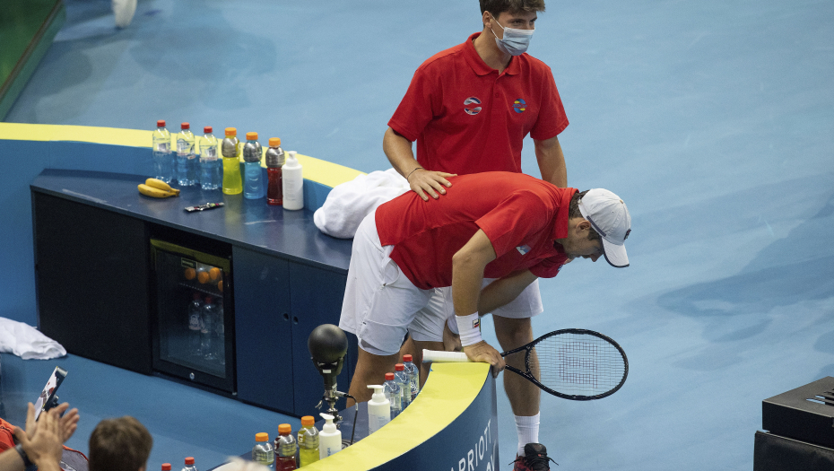 Ustao je sa klupe sa reketom u rukama, međutim nakon dva koraka, morao je da se pomiri sa tim da mora da preda meč.