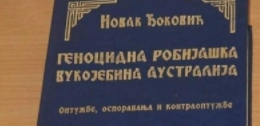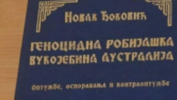 Tako je napravljena ilustracija u kojoj je montirano da je Novak Đoković u stilu lidera radikala napisao knjigu "Genocidna robijaška vukoje*ina Australija".