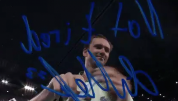 Dok je izlazio zastao je kod kamere koja je snimala meč i potpisao se na nju. Ali, nije ostavio samo autogram.
