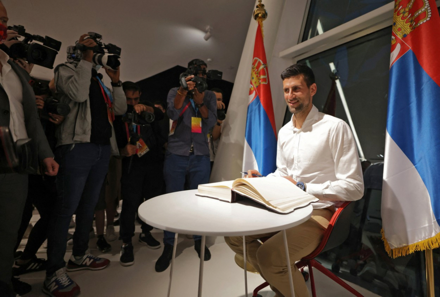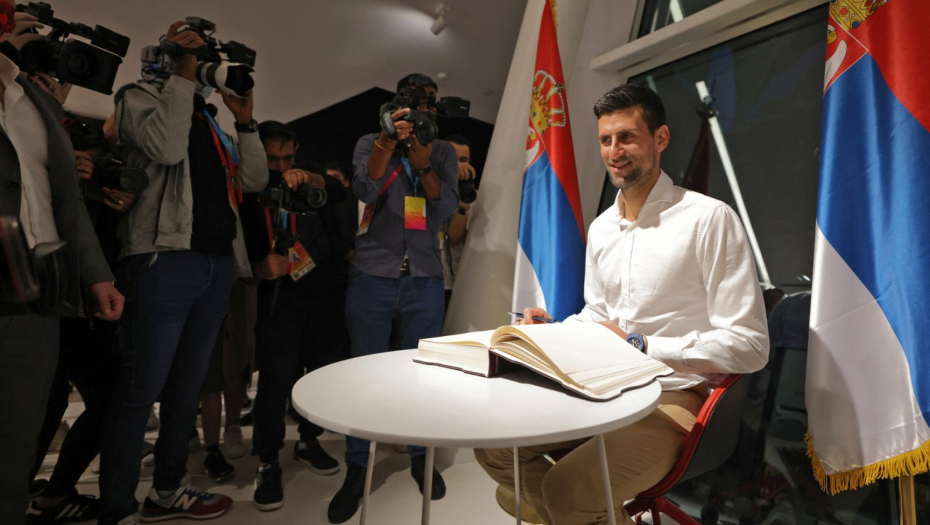 Novak je prigodno dočekan, a njegova supruga obratila se prisutnima, dok se srpski as upisao u knjigu utisaka.
