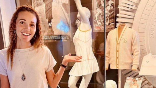 Jelena je posebno zastala ispred jedne vitrine, gde su bili izloženi rekviziti mnogih igrača, među kojima i čuveni džemper koji je Rodžer Federer nosio u kultnom finalu sa Nadalom 2008. godine.