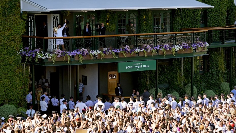 Hiljade ljudi pozdravilo je Novaka Đokovića na balkonu u kompleksu Vimbldona.