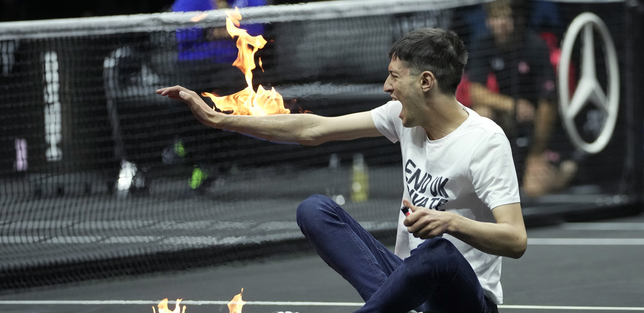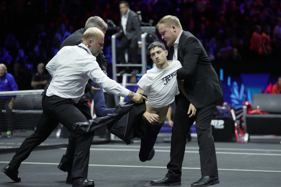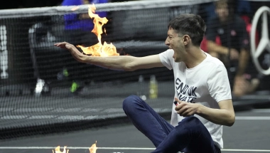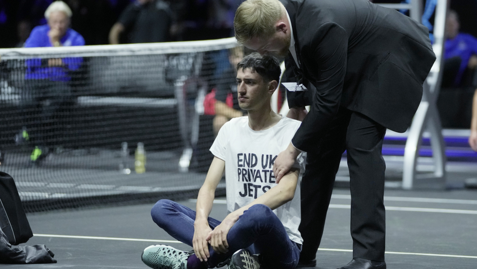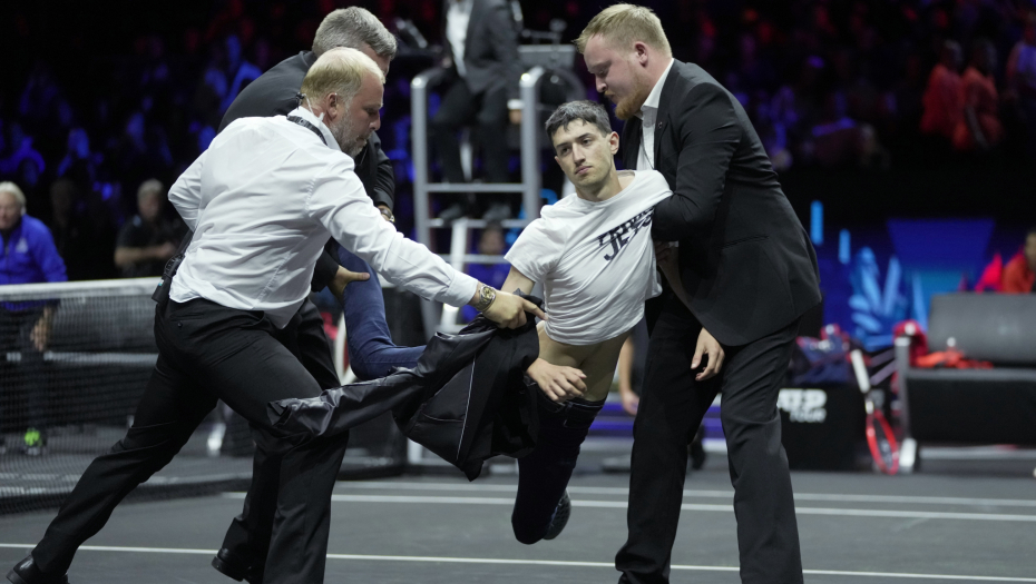 Nepoznati navijač je upao na teren u danu kada se Rodžer Federer oprašta od tenisa. Tom prilikom se bukvalno zapalio. Obezbeđenje je brzo intervenisalo i brutalno ga iznelo sa terena.