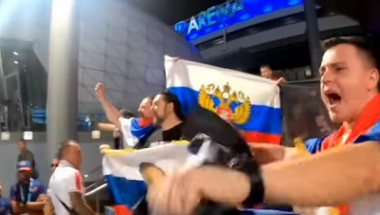 Jedan od njih je uzviknuo: "Brat Aleksandar Zaldostanov, iz Melburna u Austraiji pozdravlja našu braću u Moskvi. Živela Rusija!".