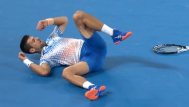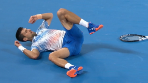 Tokom drugog seta finala Australijan opena Novak Đoković je doživeo peh. Srbin je pokušavao da stigne lopticu, a onda se okliznuo i pao je.