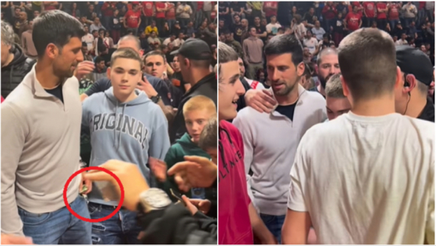 Potom je usledio momenat u kojem je Đoković zavukao ruku u džep izvadio 100 evra i gurnuo mladiću u njegov džep. Novak nije želeo da se ovo snimi, pa je tako pokušao krišom sve da izvede.
