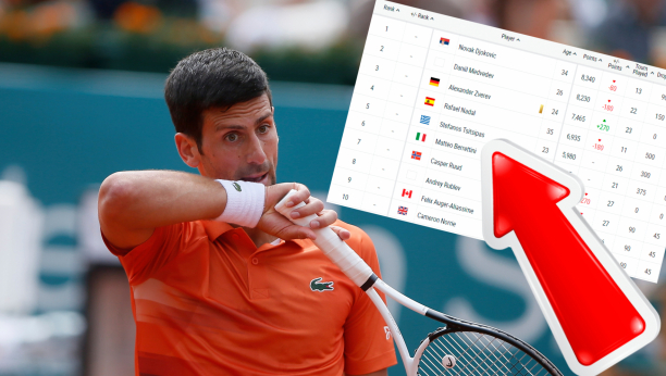 Novak Đoković je ovog ponedeljka započeo svoju 386. nedelju kao teniser broj 1, i to za, verovali ili ne svega pet bodova više od Alkaraza, ali je jasno da će Španac samom pojavom na turniru u Rimu preskočiti Srbina.