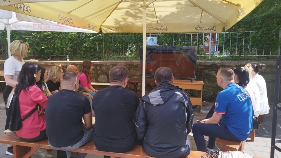Okupljeni Srbi na protestu u Zvečanu prate uživo meč Novaka Đokovića na Rolan Garosu.